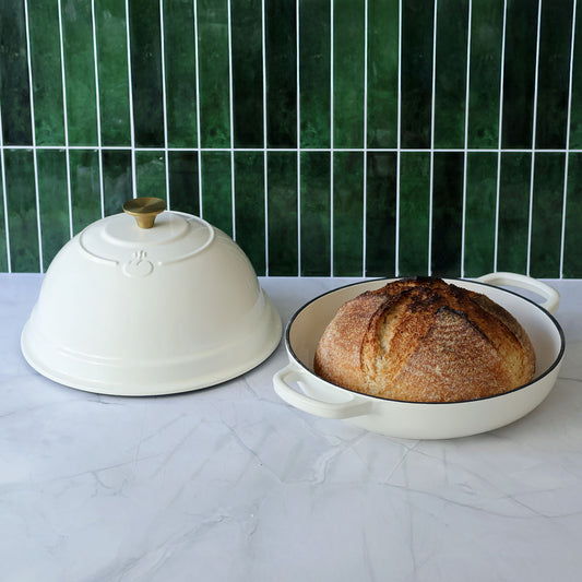 Our Dutch ovens are designed to take the guesswork out of great baking. The cast iron core delivers powerful, even heat, ensuring your bread rises consistently and bakes all the way through. The tight-fitting lid traps steam during those crucial first minutes, helping your dough expand beautifully and form that signature crust. And because heat and moisture stay exactly where they should, you get consistent results every single time.