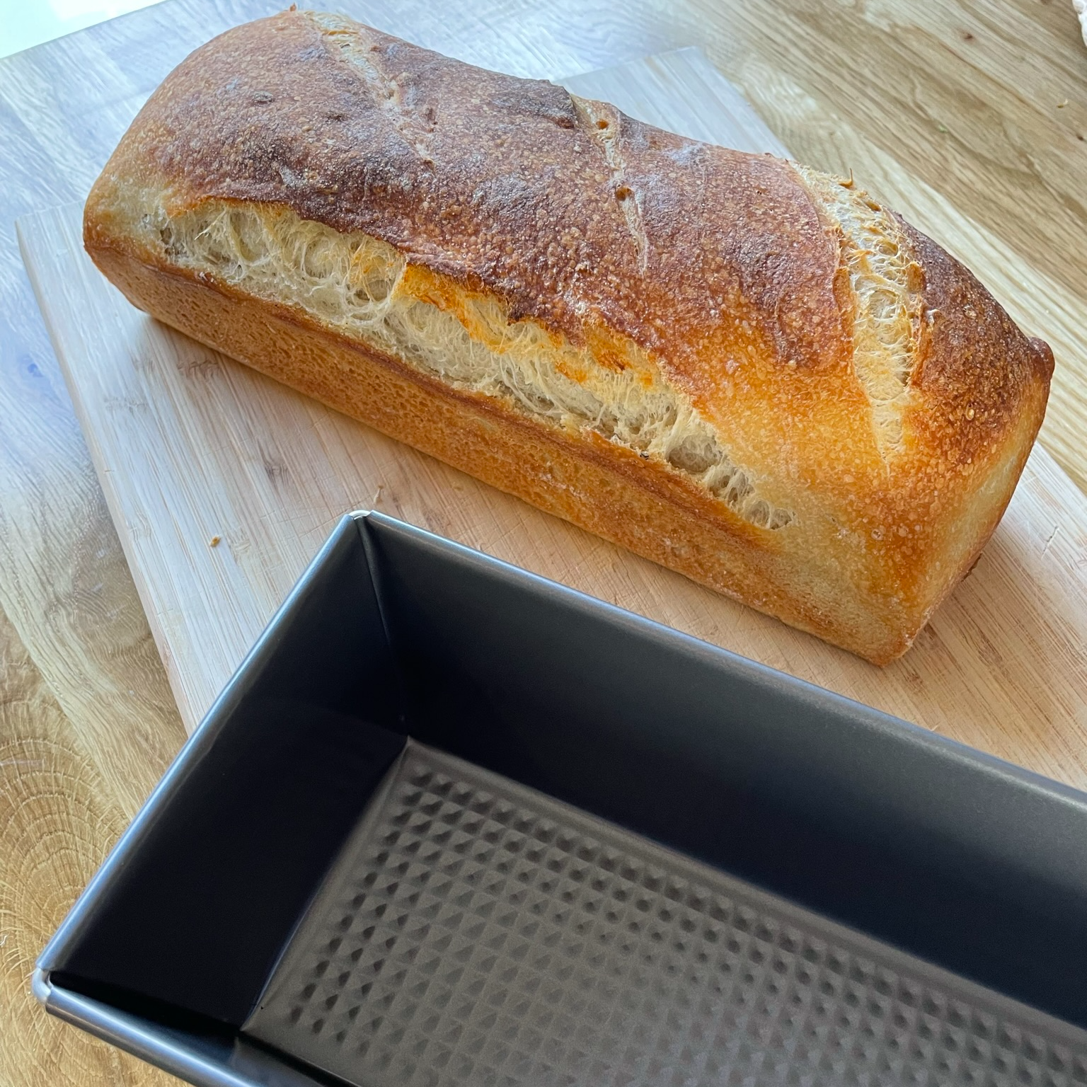 • Suits 1000g-1200g dough (the recipe size loaf or a slightly larger loaf. You can scale the recipe up by 20% to fit nicely into this tin).