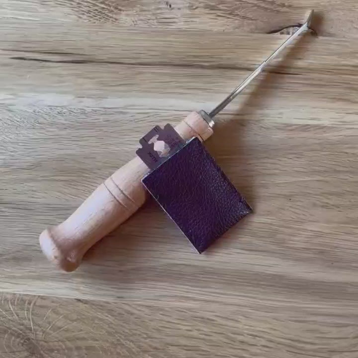 This lame (pronounced ‘Lahm’ which is a French word that means ‘blade’) is as a sourdough scorer - it slices the dough before being placed into a hot oven. Scoring dough helps the bread expand in the oven without the skin splitting randomly. You can even get creative with different scoring patterns in your sourdough bread!